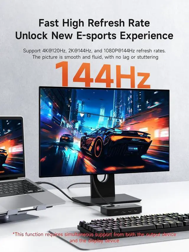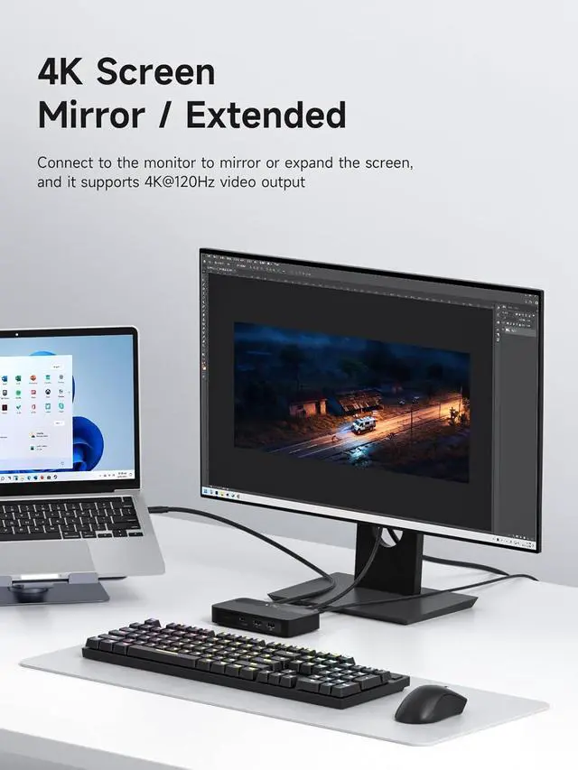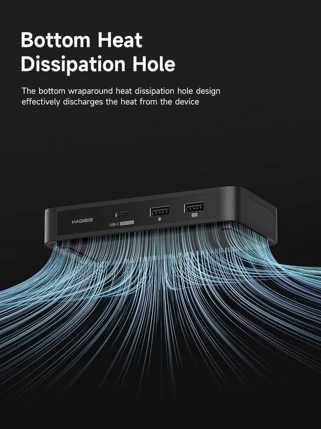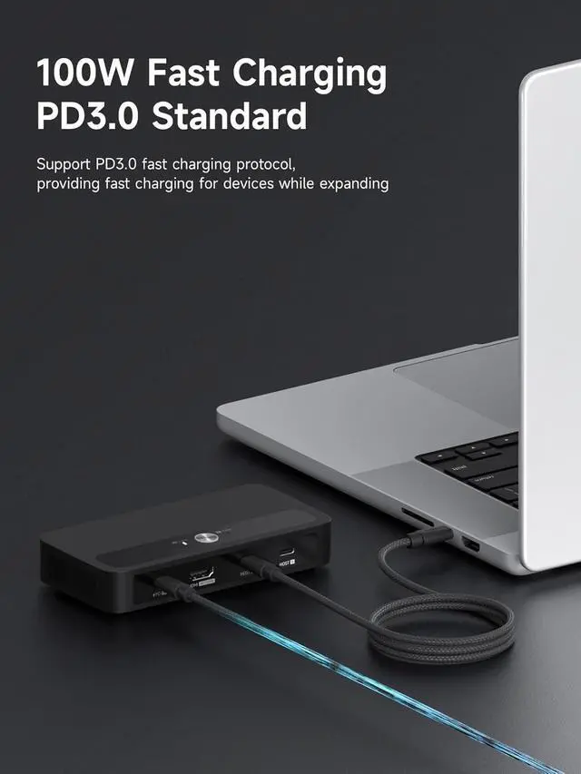 100W Power Delivery: Utilizes PD3.0 Programmable Power Supply (PPS) to deliver up to 100W dynamic power, enabling direct charging for high-wattage devices like gaming laptops (180W max) and 27-inch 4K monitors (65W). This reduces the need for separate adapters and supports fast charging at 90% efficiency during device operation