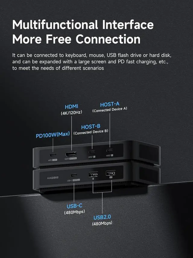 Smooth Visual Experience: Hagibis KVM switch supports up to 4K@120Hz resolution, delivering an incredible viewing experience with lifelike images and vibrant colors. It also offers backward compatibility with 2K@144Hz, 1080P@144Hz or lower resolutions to ensure compatibility with various HDMI devices