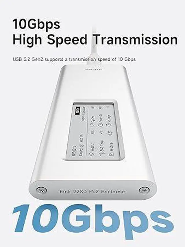 Hagibis SSD Enclosure, E-Ink Display Aluminum 10Gbps M.2 NVMe SSD Case, Ink Screen Super Capacitor USB 3.2 Gen 2 to PCI-E NVMe M and B&M Keys External SSD Enclosure for 2230/2242/2260/2280 SSDs 9210CN