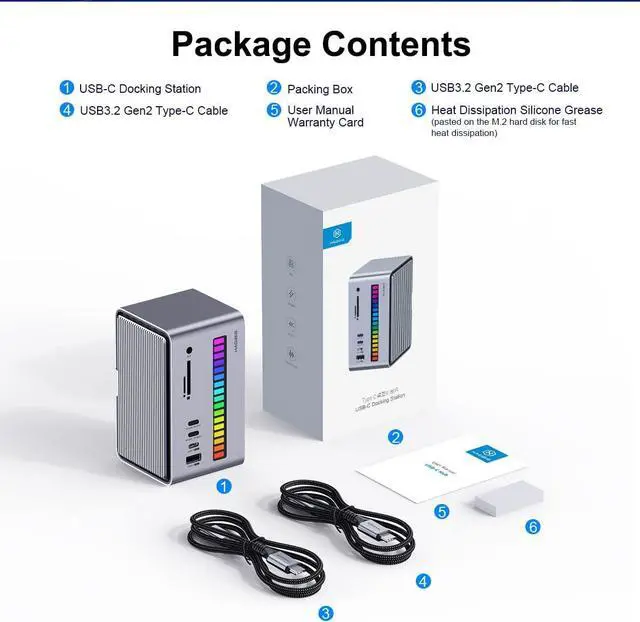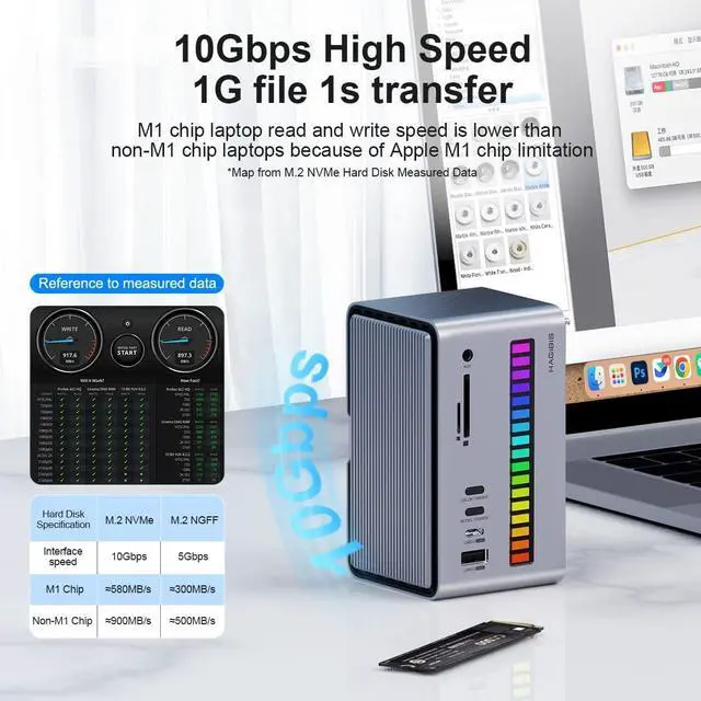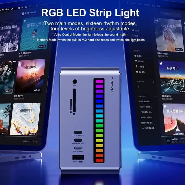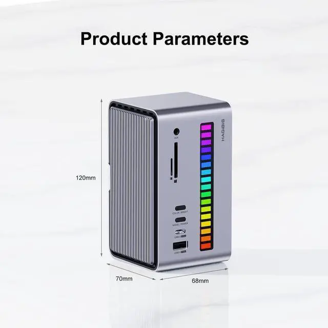 Unique Integrated USB-C Docking Station: Hagibis innovated and developed this RGB LED Strip Light USB C Hub, which integrates docking station, hard disk enclosure, LED strip light and SD card storage box, make your docking station different from the rest, add color to your desktop