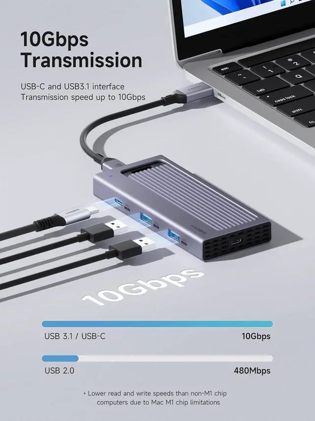 4 in 1 Multi-Function USB-C Hub: Extend the USB C port to 10Gbps 2*USB-A 3.1, 10Gbps USB-C 3.1 and 5V/2A Power Supply port for all your necessary needs