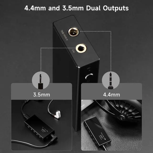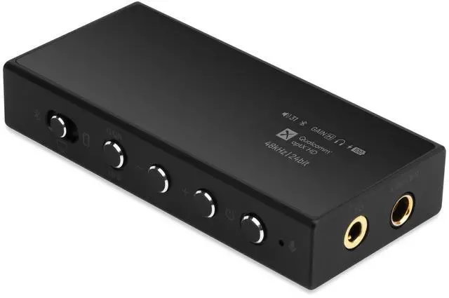 ^^ The M18i provides both 3.5 mm unbalanced and 4.4 mm balanced outputs. Its manual gain control allows adjustment according to personal preferences and headphone/audio-system characteristics, making it suitable for a wide range of apps and devices. An MFB button is provided for pairing and music playback in Bluetooth mode. Volume buttons provide 60 levels of loudness. ^^ The M18i supports seamless switching between lossless Bluetooth and USB DAC modes. It features Qualcomm's latest Snapdragon Sound technology with Bluetooth 5.4, supporting AAC, SBC, aptX, aptX HD, aptX Adaptive, LE AUDIO, and 24bit/96kHz LDAC.