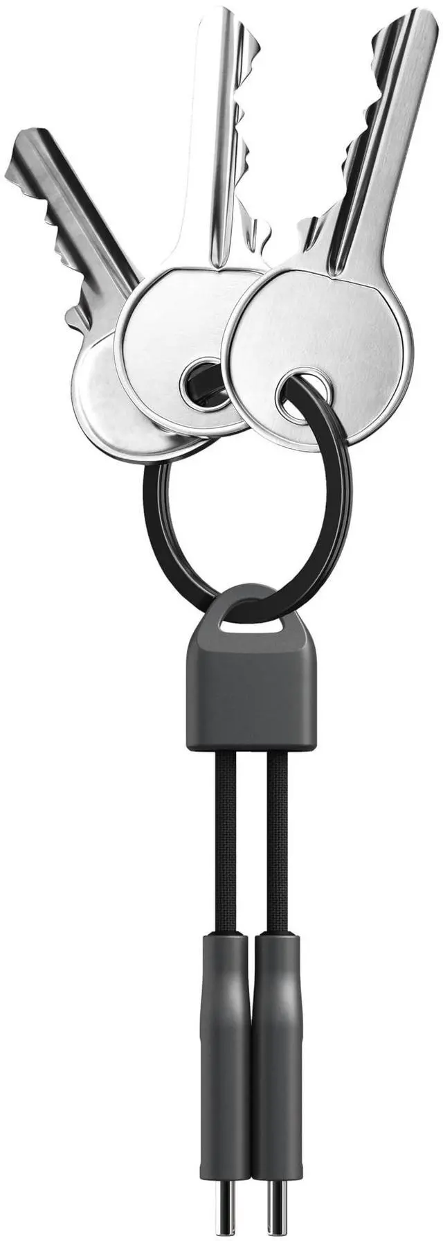 ChargeKey transfers the maximum amount of power from the smallest possible body. It fits in the palm of your hand and barely adds any bulk to your keychain. Plus, its electroplated zinc cable tips have integrated magnets, so they stay connected to each other when not in use. ^^ ChargeKey supports a wide range of charging configurations up to 240W. Plug the USB-C tip into any power source and begin on-the-go charging immediately. ^^ ChargeKeys nylon cable has a braided sheath for lasting durability and its zinc cable housings are electroplated for a tough, scratch-resistant finish.