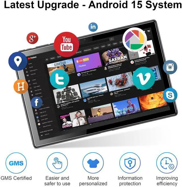 Newly Upgraded Android 15 TabletThis Android tablet features a quad-core processor, is officially certified by Google, and supports popular apps like Netflix and TikTok. The BYYBUO Android 15 tablet offers significant advantages in multitasking, privacy protection, and security, making it an affordable, versatile tablet that meets your diverse needs.