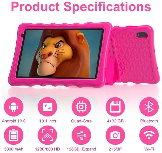 Tablet Excellent Performance: 10 inch kids Tablet is featured with high performance CPU Quad-core, 2+2 (Expand) GB RAM and the newest Android 13 Operating System. You can download different apps from the Google play store for your kids, such as ABC Mouse, HULU, YouTube Kids, Netflix, Zoom, etc. ^^ Excellent HD Display Tablet for