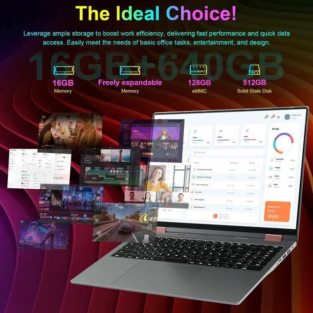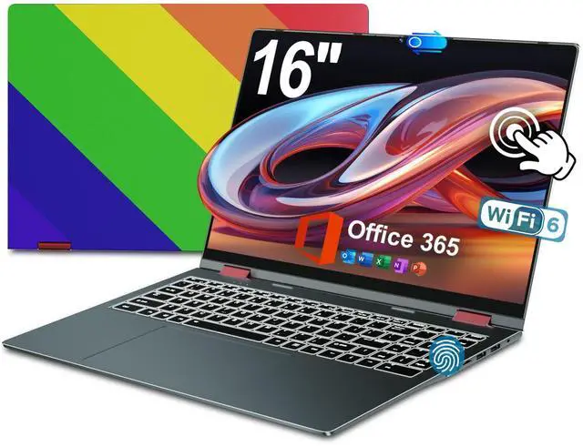 jumper Rainbow Laptop 16 inch, Vibrant Pride Themed Convertible Touchscreen, 2 in 1 Laptop with 16GB RAM 640GB Storage, Fingerprint Reader, 360 Degree Rotation, Backlit Keyboard, 53.2WH, WiFi 6
