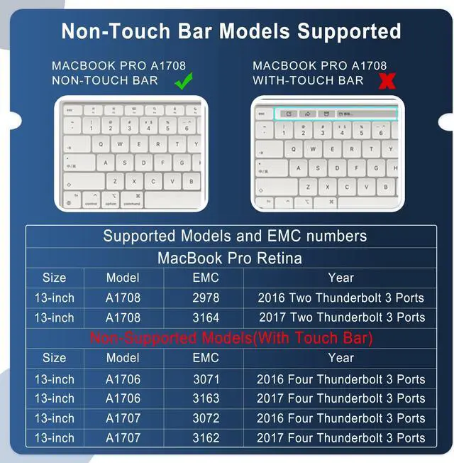 [(PERFECT COMPATIBILITY)] This MacBook Pro replacement ssd compatible with MacBook Pro A1708 Retina 13" 2016 EMC 2978,2017 EMC 3164. Note: It only supports Non-Touch Bar models. Not Support Model: A1706 A1707. Model & EMC needs both match with our list, or will not work