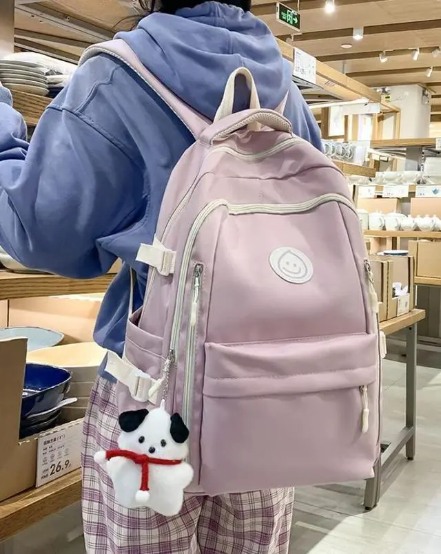 Premium Material: Crafted from high-quality nylon fabric, our preppy backpack is not only wear-resistant and durable but also water-resistant.
