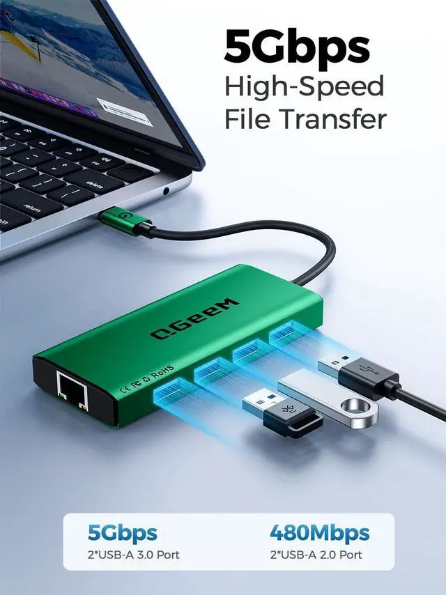 QGeeM USB C Hub Ethernet,9 in 1 USB Type C Hub HDMI Multi-Port Converter Adapter,100W Pd, USB 3.0,SD/TF Card Reader,Compatible for MacBook Pro Air Ipad HP Dell Lenovo Chromebook etc.-Green
