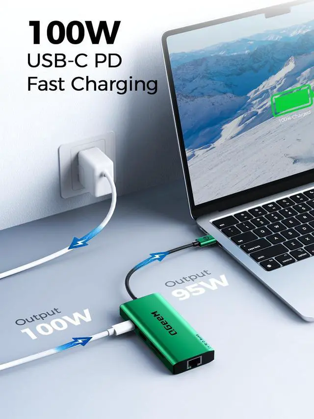 100W Laptop Fast Charging: The Type C hub supports 100W PD fast charging, meeting the working needs of laptops, tablets or other Type-C port devices, keeping you away from low battery emergencies. The portable and compact design allows you to take this USB