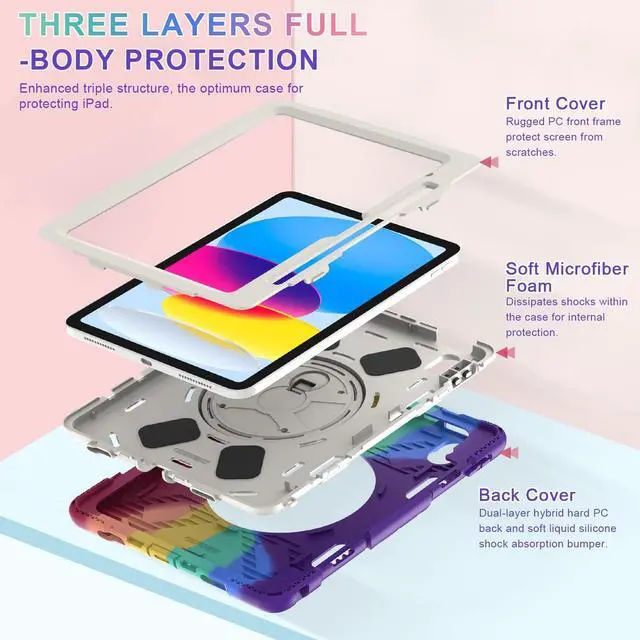 MILITARY-GRADE PROTECTION: iPad 10th/11th gen case Certified 15ft drop test, equipped with anti-collision impact-absorbing angle structure to disperse severe shocks. Shock-resistant, multi-layered apple 10th/11th generation iPad A16 case with rugged PC and flexible silicone rubber. Maximum protection for your