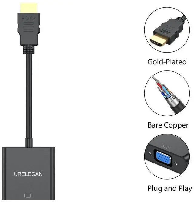 URELEGAN HDMI to VGA Adapter 5-Pack, Computer HDMI to VGA Monitor (Male to Female) Adapter 1080P@60Hz for Computer, Desktop, Laptop, PC, Monitor, Projector, HDTV, Roku, Xbox and More