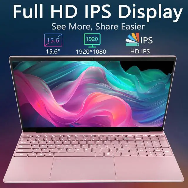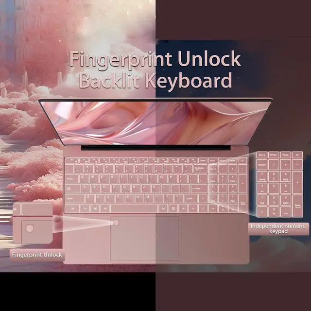 15.6 Inch Laptop, N95 Processor (4C4T, 1.7 - 3.4GH z), 32GB RAM, 1TB PCIe SSD, Backlit Keyboard, Fingerprint Unlock, FHD IPS Display, 8000mAh Battery, Win11Pro Computer for Work & Study (Rose Gold)