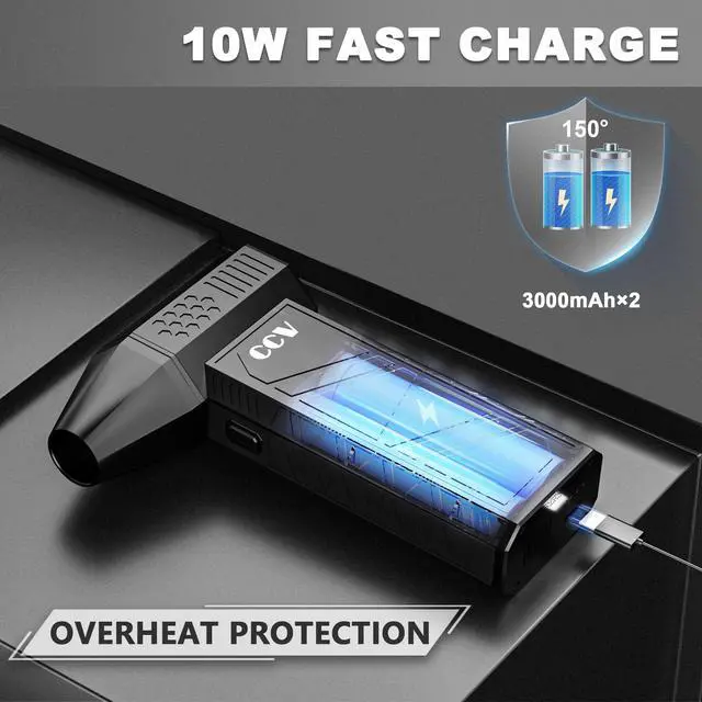 Compressed air Duster--This product remover adopts new powerful motor technology which with speed of 150000RPM and blowing force of 180G. The powerful wind force can clean up debris and dust on various devices easily. ^^ Rechargeable Air Duster-- Accessories is a USB-TepyC charging cable which supports up to 10W fast charging, Can be used for 100min when fully charged. Energy saving, environmental protection, recyclable. ^^ Multiple Use--This product is lightweight in size with 315g. It is easy to carry and can be used indoors and outdoors. It is suitable for a variety of scenarios, such as cleaning desktops, keyboard camera lenses, drying pet hair, and water droplets on windows.