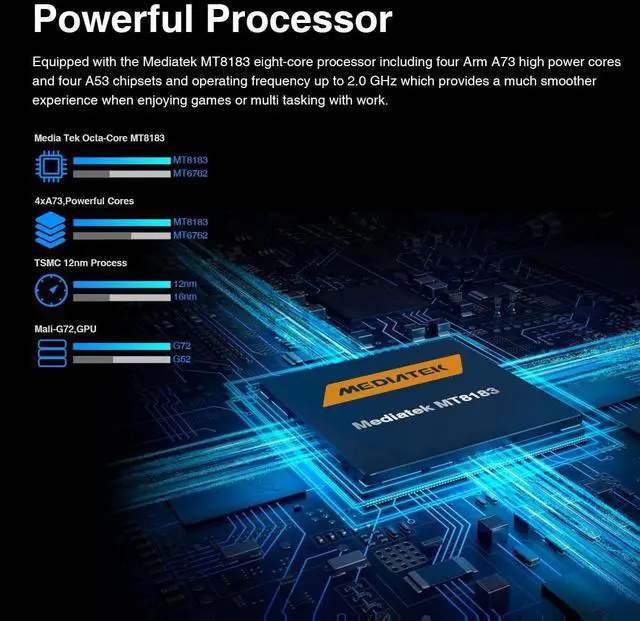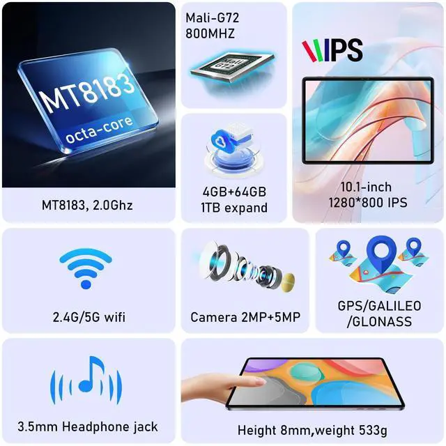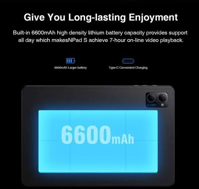 [Smooth Performance for Work & Play] The N-one android tablet powered by an octa-core MediaTek MTK8183 processor and 4GB RAM, ensuring seamless multitasking for business apps, video calls, and streaming. ^^ [Vibrant 10.1 -inch IPS Display] Enjoy crisp visuals on a 10 inch tablet with HD 1280800 resolution, ideal for video conferences, online classes, and YouTube. ^^ [Long-Lasting Battery Life] With up to 4 hours of local video playback, the NPad S keeps you productive and entertained throughout the day. ^^ [Dual Cameras for Clear Video] Calls Features a 5MP rear camera and a 2MP front camera, perfect for Zoom meetings, online courses, and family calls.