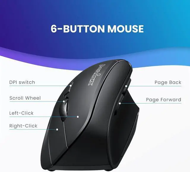 ADVANCED ERGONOMIC DESIGN - PERIMICE-715 is a wired ergonomic vertical mouse with intuitive 6 button design; Specifically-designed for medium to large hand-size;