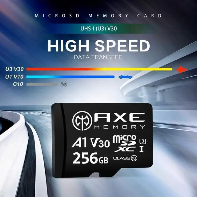 [Specifications] : Micro SDXC memory card with SD adapter included. UHS-I U3, A1 app performance, V30 Video Speed, 4K Ultra HD, Full HD, Class 10