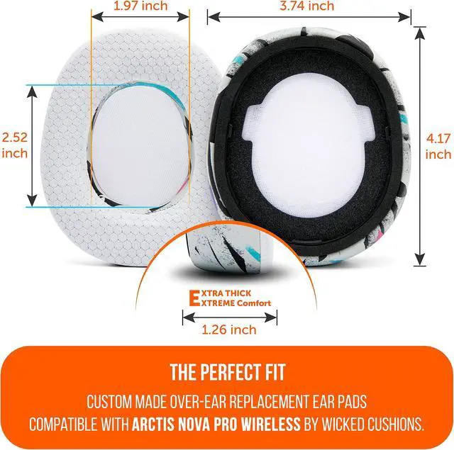 WC Freeze Nova Pro Wireless - Hybrid Fabric Cooling Gel Replacement Earpads for Steelseries Arctis Nova Pro Wireless by Wicked Cushions, Improved Durability, Thickness & Sound Isolation ^^ 90's White