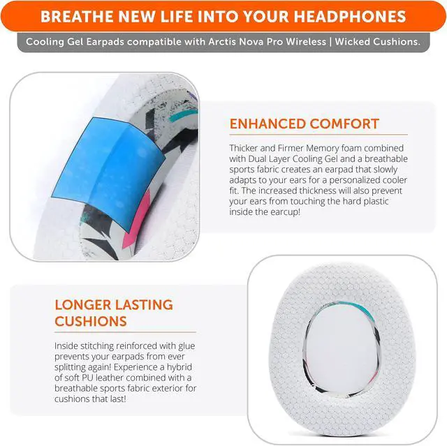 Experience the FreeZe: Do your ears get hot after several hours of using your headphones? WC FreeZe cooling gel ear pads compatible with Arctis Nova Pro Wireless keep your ears cool for longer periods of time. A combination of Dual Layer cooling gel (interior layer, top layer), and a breathable hybrid of sports fabric and leather help you get through those long listening sessions.
