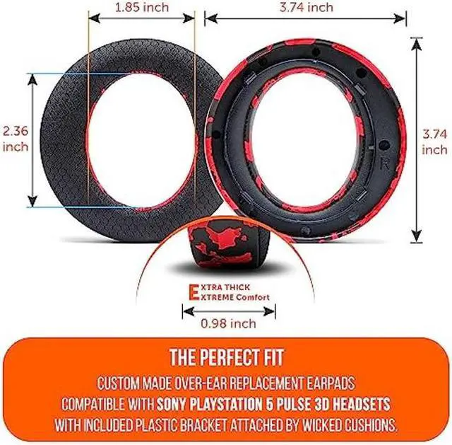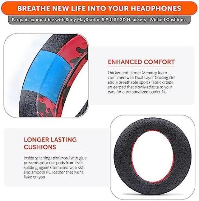 WC Freeze Ps5 V2 - Cooling Gel Earpads Compatible with Sony PS5 Pulse 3D Headphones by Wicked Cushions ^^ Increased Ear Opening, Thickness, Comfort & Sound Isolation for Epic Gaming ^^ Red camo