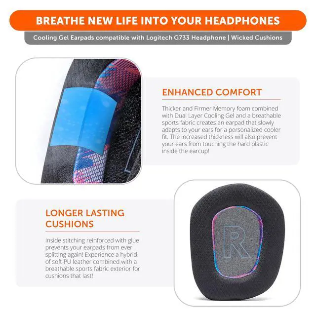 WC Freeze G733 - Cooling Gel Earpads for Logitech G733 Headphones by Wicked Cushions | Enhanced Comfort & Thickness with Cooling Gel Technology for Epic Gaming | Speed Racer