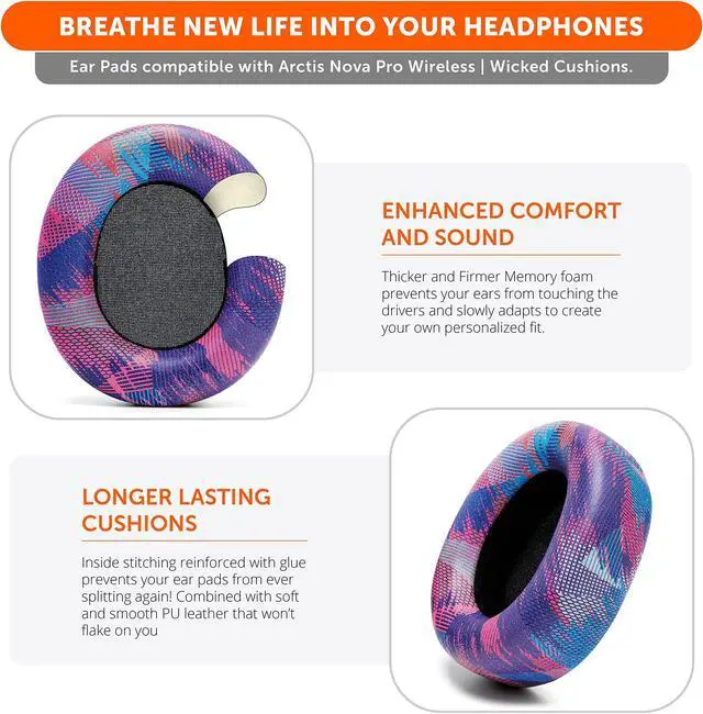 Unmatched Comfort: Wicked Cushion's professional-grade PU leather is designed for long-term, crack-free durability. These extra thick bigger ear cushions made for Arctis Nova Pro Wireless were specifically designed for long-term comfort so you can enjoy long gaming sessions with your headphones pain free.
