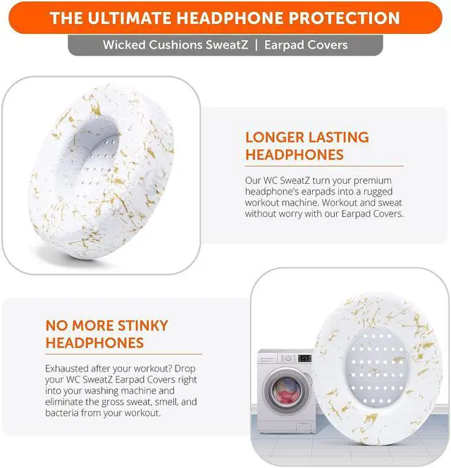 WC SweatZ Studio - Patented Earpad Covers for Beats Studio 3 (A1914) & Beats Studio 2 (B0500 /B0501), Made by Wicked Cushions | Sweatproof & Easily Washable | Gold Marble