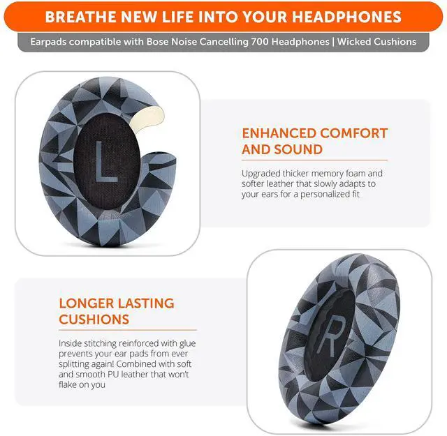 ^^ Rugged Durability: The inside seams on this replacement ear cushion kit for Bose 700 are made with added stitching reinforced with glue, to prevent your cushions from splitting and increase their lifespan. ^^
