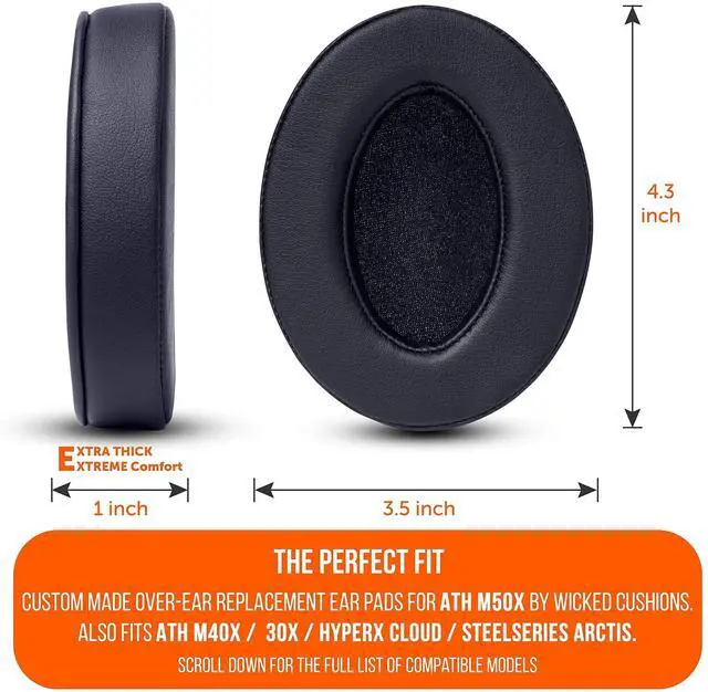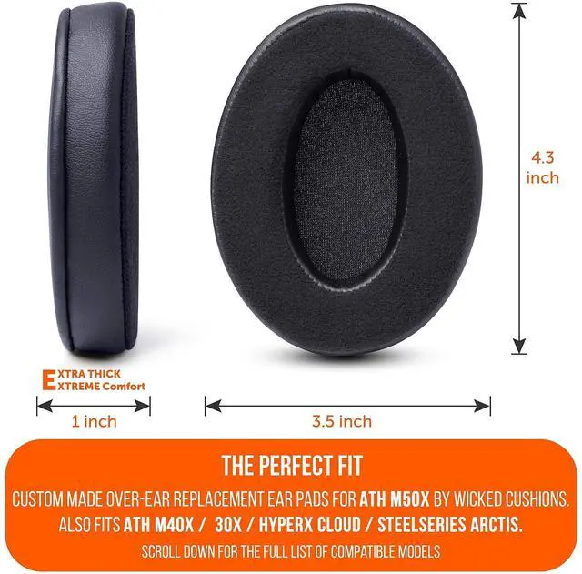 These Earpads were made to be compatible with: ATH M50X / M50 / M50XBT ATH M40 / M40X / M40FS ATH M30 / M30X ATH M20X ATH MSR-7 STEELSERIES ARCTIS 3 / 5 / 7 / PRO / PRO WIRELESS HyperX CLOUD 1 / CLOUD 2 / CLOUD ALPHA / CLOUD STINGER / CLOUD FLIGHT TURTLE BEACH STEALTH 300 / 400 / 500 / 600 / 700 / X12 / ATLAS MONOPRICE 8323