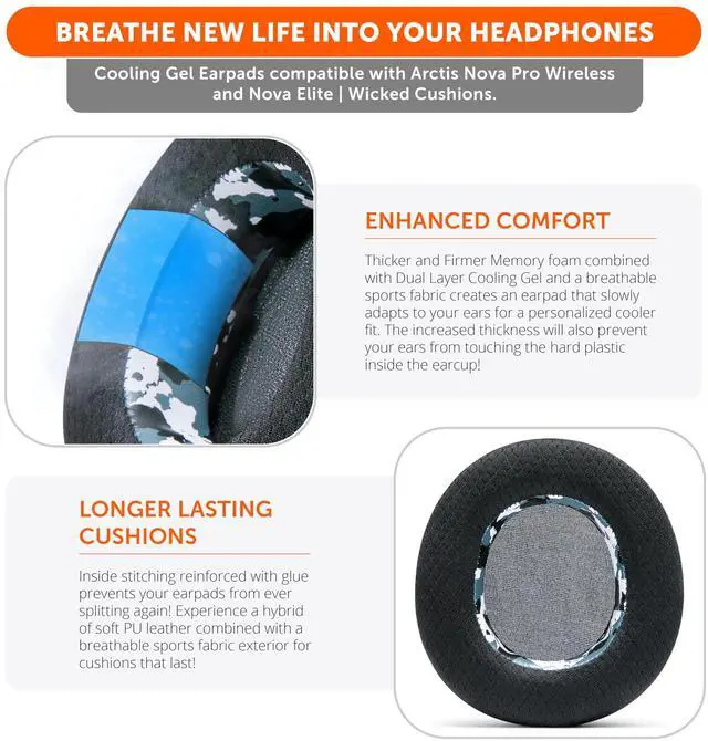 ^^ Experience the FreeZe: Do your ears get hot after several hours of using your headphones? WC FreeZe cooling gel ear pads compatible with Arctis Nova Pro Wireless and Nova Elite keep your ears cool for longer periods of time. A combination of Dual Layer cooling gel (interior layer, top layer), and a breathable hybrid of sports fabric and leather help you get through those long listening sessions. ^^ Enhanced