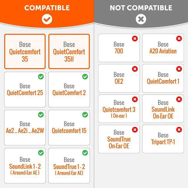 ^^ Perfect Fit: Our ear pads by Wicked Cushions fit perfectly on QuietComfort 35 & 35ii, Quiet Comfort 2, QC25, QC15, AE2, AE2i, AE2w, SoundTrue, and SoundLink Bose headphone models. Get the perfect fit with our ear pads upgrade.