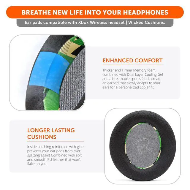 Cooling Technology: Say goodbye to discomfort during long gaming sessions. WC FreeZe Xbox Wireless earpads, compatible with Xbox Wireless Gaming Headset, feature advanced cooling gel (dual layers) and a breathable mix of sports fabric and leather for prolonged comfort.