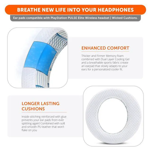Cooling Technology: Say goodbye to discomfort during long gaming sessions. WC FreeZe Pulse Elite ear pads, compatible with PlayStation Pulse Elite Wireless, feature advanced cooling gel (dual layers) and a breathable mix of sports fabric and leather for prolonged comfort.