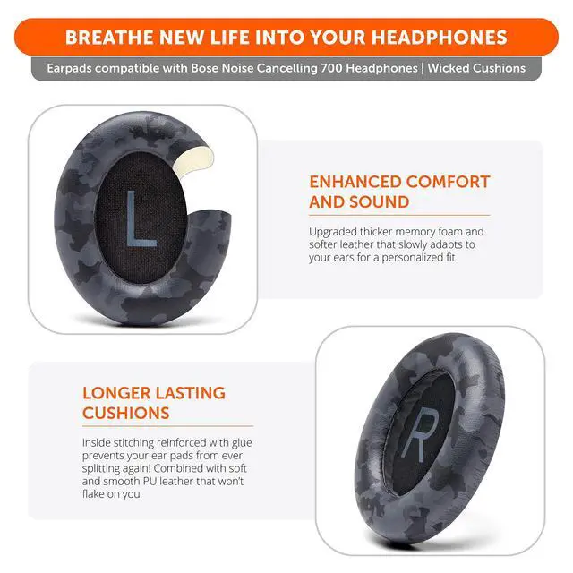 ^^ Rugged Durability: The inside seams on this replacement ear cushion kit for Bose 700 are made with added stitching reinforced with glue, to prevent your cushions from splitting and increase their lifespan. ^^