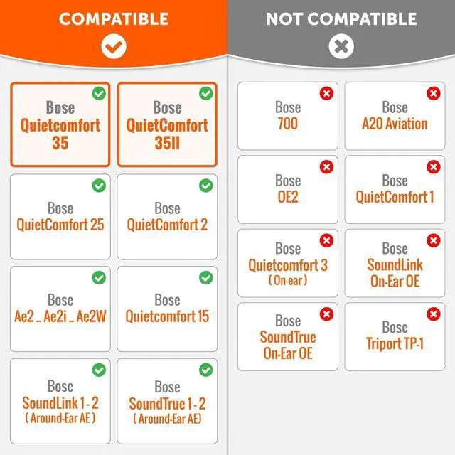 ^^ Perfect Fit: Our ear pads by Wicked Cushions fit perfectly on QuietComfort 35 & 35ii, Quiet Comfort 2, QC25, QC15, AE2, AE2i, AE2w, SoundTrue, and SoundLink Bose headphone models. Get the perfect fit with our ear pads upgrade.