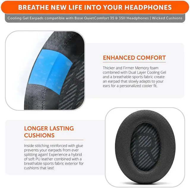 Ease: Our complete replacement ear pads kit for Bose QuietComfort 35 & 35ii headphones makes installation a breeze. No special tools required - simply follow our step-by-step guide for a seamless upgrade. Enjoy superior comfort and sound quality with our easy-to-install kit. ^^ Cooler for Longer with