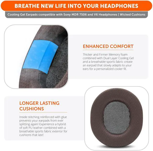 WC Freeze 7506 - Cooling Gel Earpads for Sony MDR-7506, MDR-CD900ST & MDR-V6 by Wicked Cushions ^^ Breathable Comfort, Enhanced Isolation & Long-Term Durability ^^ Brown