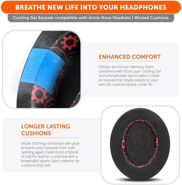 FreeZe: Do your ears get hot after several hours of using your headphones? WC FreeZe cooling gel earpads keep your ears cool for longer periods of time. A combination of Dual Layer cooling gel (interior layer, top layer), and a breathable hybrid of sports fabric and leather help you get through those long listening sessions ^^ Compatible With Multiple Arctis Nova Headsets: These earpads are made specifically to fit the Steelseries Arctis Nova series of Headphones. You can comfortably upgrade your ear cushions for Arctis Nova Pro Wired, Arctis Nova Pro for Xbox, Arctis Nova 7/7X/7P Wireless, Arctis Nova 3, Arctis Nova 1/1P/1X headphones ^^ Enhanced