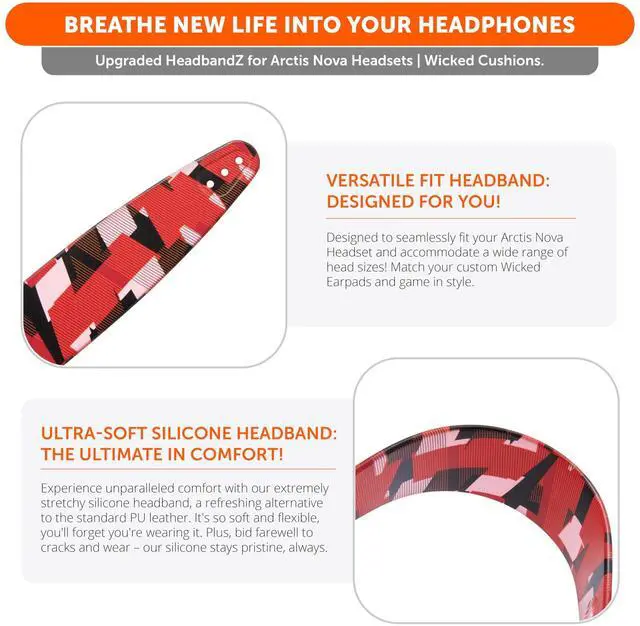 WC HeadbandZ Arctis Nova - Upgraded Silicone Headband for Arctis Nova Headsets by Wicked Cushions - Enhanced Flexibility, Comfort, and Style with Matching Earpad Designs ^^ Red Prism