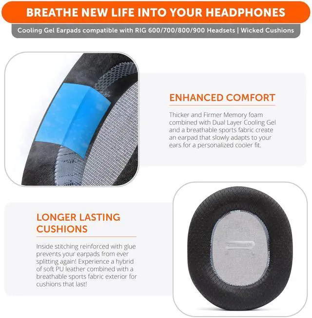 • Cooling Technology: Say goodbye to discomfort during long gaming sessions. WC FreeZe Rig 600/700/800/900 ear pads, compatible with RIG 600 Pro, RIG 700 HX, RIG 800 Pro, and RIG 900 Max, feature advanced cooling gel (dual layers) and a breathable mix of sports fabric and leather for prolonged comfort.