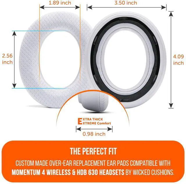 WC Freeze Momentum 4 - Cooling Gel Earpads for Sennheiser Momentum 4 Wireless & HDB 630 Headphones by Wicked Cushions - Boost Comfort, Thickness, & Sound Isolation for Epic Listening ^^ White