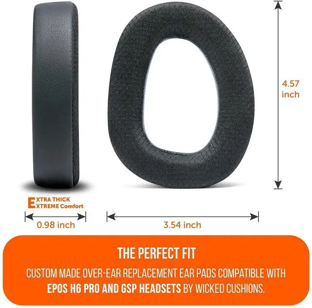 WC Freeze EPOS H6 Pro - Cooling Gel Earpads for EPOS H6 Pro/Sennheiser GSP 600 / GSP500 / GSP550 / GSP670, Made by Wicked Cushions - Enhance Comfort, Durability, Thickness ^^ Black