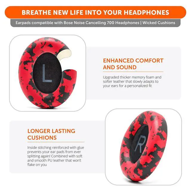 WC Wicked Cushions Upgraded Replacement Ear Pads for Bose 700 Noise Cancelling Headphones (NC700) - Softer PU Leather, Luxurious Memory Foam, Added Thickness, Extra Durable Ear Cushions ^^ (Red Camo)