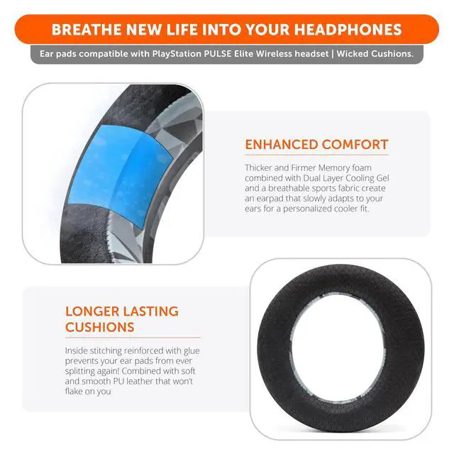 Cooling Technology: Say goodbye to discomfort during long gaming sessions. WC FreeZe Pulse Elite ear pads, compatible with PlayStation Pulse Elite Wireless, feature advanced cooling gel (dual layers) and a breathable mix of sports fabric and leather for prolonged comfort.