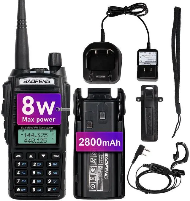 ^^ Kit Includes: UV-82 radio, 2800mAh battery, dual band standard antenna, dual PTT earpiece, charger and adapter, Wrist Strap, Belt Clip, User Manual.