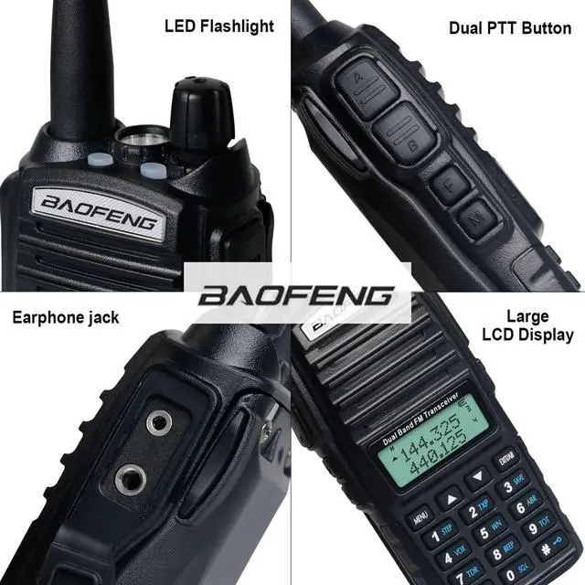 Single Push-to-Talk Selectable: Baofeng UV-82 come with a dual push-to-talk button. When you may not be able to see the radio, you can choose the call by pressing the upper or lower end of the PTT switch. You can dispatch without a frequency change.