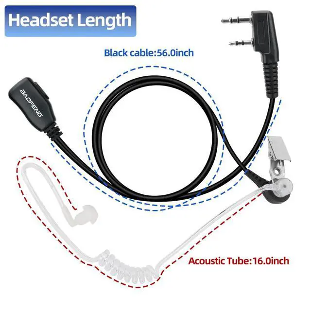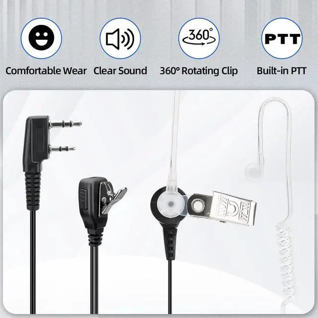 BAOFENG Walkie Talkies Earpiece with Mic 2 Pin Radio Headset Acoustic Tube for Walkie Talkie UV-5R Mini BF-888S UV-5R BF-F8HP PRO AR-5RM K5PLUS UV-32 DM-32 Two Way Radio Earpiece 5 Pack