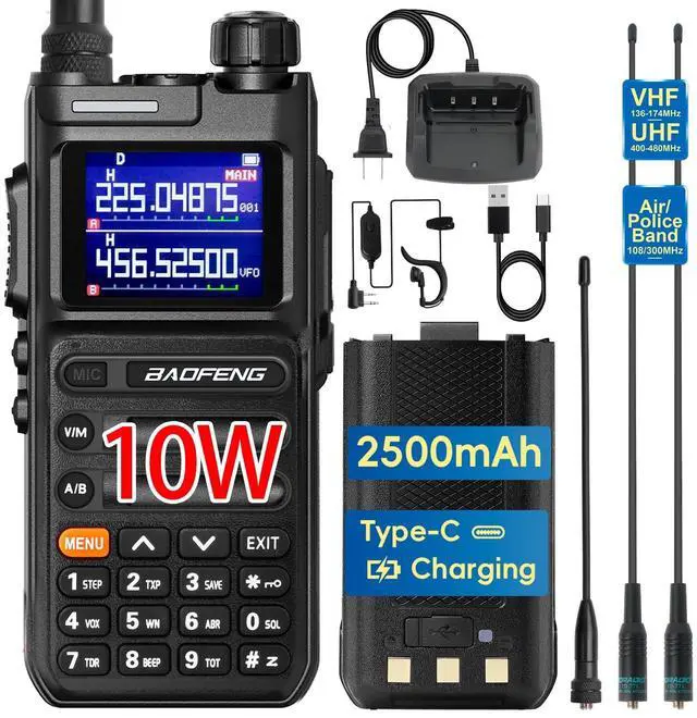 Included All You Need1X UV26 Ham Radio, 1X 6.1" antenna, 1X 15.12" 771 antenna, 1X 10.63" 771 Air-band antenna, 1X 2500mAh Battery, 1X Type-C charger with cable, 1X earpiece with mic, 1X belt, 1X hand strap, 1X charging base station) --SUPPORT