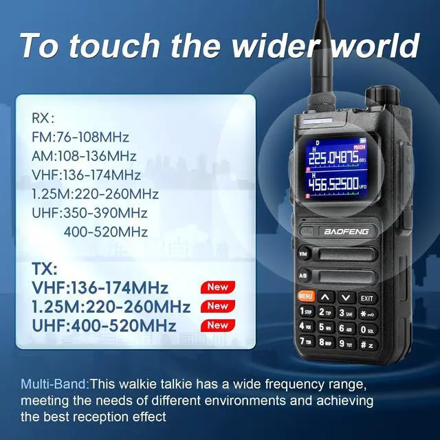 The transmitting frequency range: 136-174MHz, 220-260MHz, 400-520MHz.