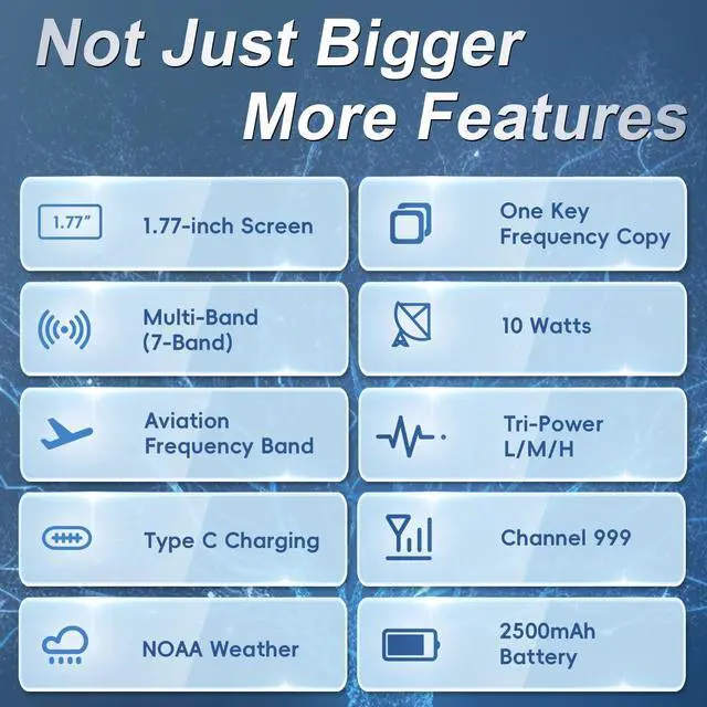 Going to 'Orders' > 'Get help' > select the order > click 'other' > send 'seller' > then send the question ^^ Frequency MatchThe UV26 tri-band radio no need to type frequencies manually or programming on PC. Quickly pairing the frequency of others Walkie Talkies. Technology designed for convenient living. 1-Hold down 'VFO' to activate COPY mode. 2-pressA# to choose a band. 3-press Menu to save the channel details ^^ Rechargeable 2500mAh Battery with Type-C5RM radio features a Type-C port on the battery for easy charging on the go. With over 2 days of standby time, the 2500mAh battery keeps you connected during outdoor activities like camping, fishing, and hiking. The 10W 5RM radio offers a range of up to 10km. A full charge lasts up to 48 hours, and it takes about 3 hours to charge via Type-C or 5-7 hours with a seat charger. It serves as survival gear and emergency supplies ^^ Multi FunctionsThe BAOFENG walkie talkies feature a 1.77" TFT color screen, 999 memory channels, aviation band, scrambling, USB C charging, password protection, stopwatch, DTMF, VOX, LED flashlight, squelch, battery save mode, repeater functions, alarm functions and advanced privacy with 50 CTCSS tones and 104 DCS codes, and more.